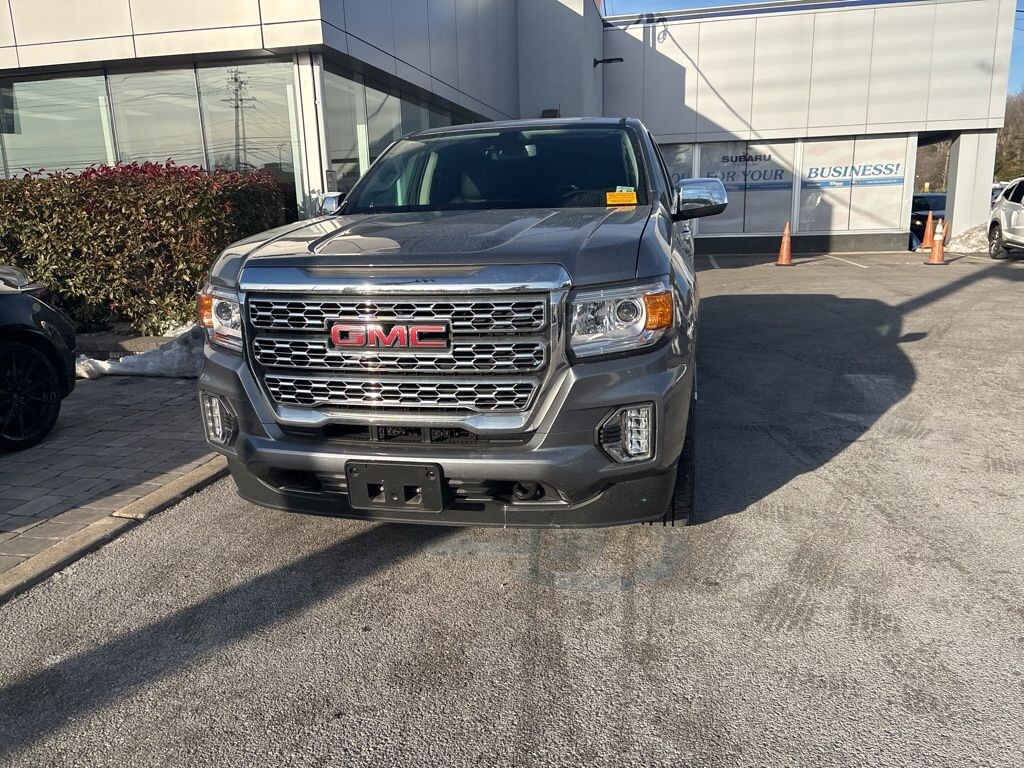 CARFAX One-Owner. Satin Steel Metallic 2022 GMC Canyon Denali V6 8-Speed Automatic 4WD Fresh Oil and Filter Change, Fully Detailed for Immediate Delivery, Local One Owner Trade, *Like New, 5" Rectangular Chrome Assist Steps, ABS brakes, Alloy wheels, Black Spray-On Bedliner w/GMC Logo, Bose Premium 7-Speaker Audio System Feature, Driver 6-Way Power Seat Adjuster, Driver Alert Package, Dual front impact airbags, Dual front side impact airbags, Forward Collision Alert, Heated Steering Wheel, Hitch Guidance, Lane Departure Warning System, Navigation System, Polished Exhaust Tip, Power driver seat, Power passenger seat, Preferred Equipment Group 4SD, Remote keyless entry, Security system, Steering wheel mounted audio controls, Tow/Haul Mode, Traction control, Trailering Package, Ultrasonic Rear Parking Assist. Priced below KBB Fair Purchase Price!